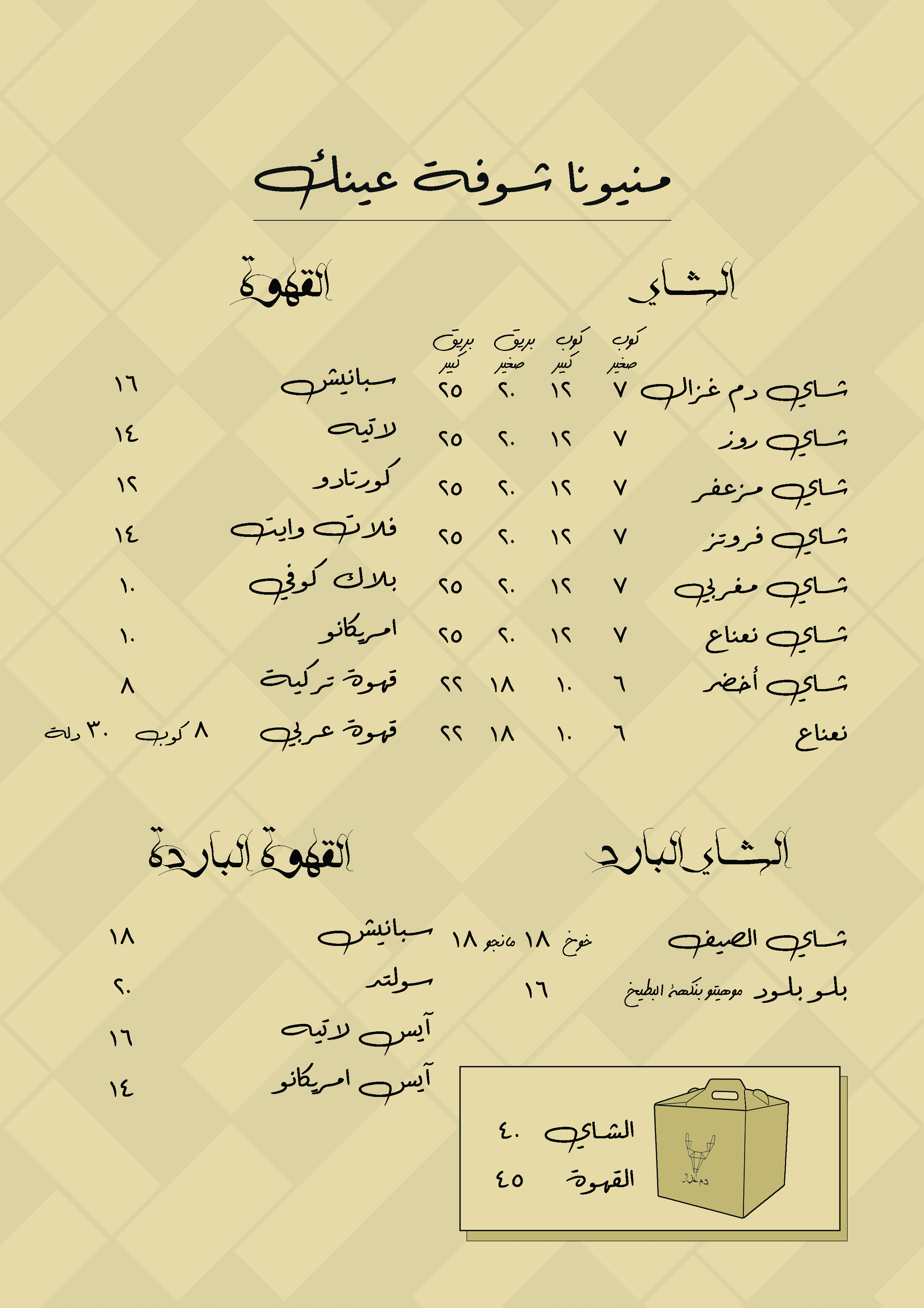 حبيت الشاي اللي طلبته، كان طعمه مميز بس بصراحة بعض الأسعار كانت شوي مرتفعة بالنسبة لكميته. مثلاً، كوب الشاي الصغير بسبع ريال، حسيته أغلى من غيره.